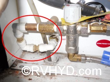 - Hot water connection on back of heater should be periodically replaced. The gaskets in the PEX fittings get hard and will sometimes leak. Replacement "Kit" is here: Hot Water Line Kit